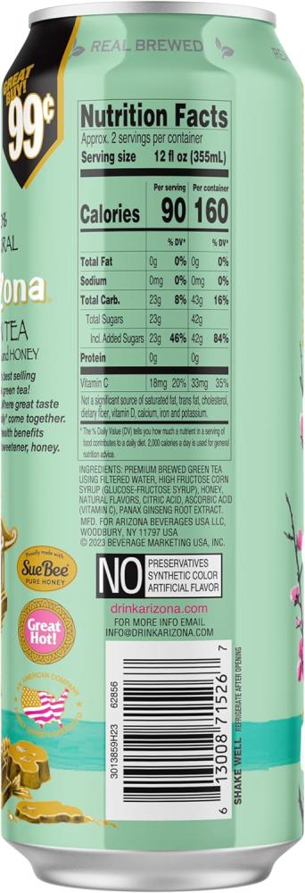 اريزونا الشاي الاخضر مع الجينسنغ و العسل 650 مل
